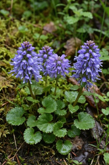 Columbia Kittentail is one of the western Gorge’s earliest “blink-and-you-miss-it” spring wildflowers. It forms a low rosette of rounded, slightly toothed leaves hugging the ground, then sends up a short spike of tiny blue-violet, bell-like flowers. Those blooms often show up on cool, north-facing, shaded banks when the forest is still mostly winter-brown—making the color pop even more. In the Columbia River Gorge, it’s commonly noted late March into early April, including spots near Wahkeena and Horsetail Falls, where seepage, mossy soil, and consistent shade create perfect conditions for early-season flowers.