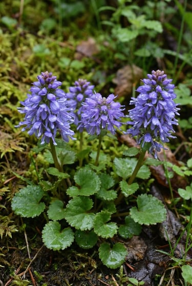 Columbia Kittentail is one of the western Gorge’s earliest “blink-and-you-miss-it” spring wildflowers. It forms a low rosette of rounded, slightly toothed leaves hugging the ground, then sends up a short spike of tiny blue-violet, bell-like flowers. Those blooms often show up on cool, north-facing, shaded banks when the forest is still mostly winter-brown—making the color pop even more. In the Columbia River Gorge, it’s commonly noted late March into early April, including spots near Wahkeena and Horsetail Falls, where seepage, mossy soil, and consistent shade create perfect conditions for early-season flowers.
