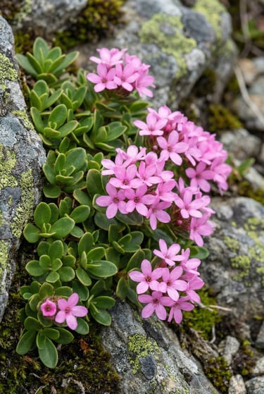 Smooth-Leaf Douglasia is a tiny, high-impact wildflower that makes a big statement for its size. Named for pioneer botanist David Douglas, it forms low mats of smooth, evergreen leaves that cling to rocky ledges and thin soils. In early spring, it sends up clusters of small, vivid blooms—often pink to rose-purple with a bright yellow “eye”—that look like little bouquets tucked into cracks in the rock.