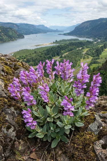 Along stretches of the Historic Columbia River Highway, it often appears as scattered clumps rising above low grasses and sagebrushy shrubs, especially on warm south-facing slopes. The flowers are shaped to attract pollinators like bees and hummingbirds, and when it’s in peak bloom you’ll often see constant activity around the blossoms. Because it grows in fragile cliffside habitats, it’s best admired from the road shoulder or established viewpoints—avoid scrambling onto loose rock or trampling nearby plants. If you catch it on a bright May morning, the contrast of pink blooms against dark basalt is pure eastern Gorge spring.