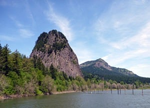 Note: The regions shown are not officially designated; they are provided for reference and defined using highway milepost ranges. Washington mileposts appear above each region name, and Oregon mileposts appear below. In this section of the Gorge, the Columbia River forms the boundary between Washington and Oregon. Milepost numbers shown in the chart represent the closest highway mile marker and are approximate; used only to help indicate general location. In some cases, the nearest milepost may be past the actual destination and/or be a short distance away from the highway or milepost.